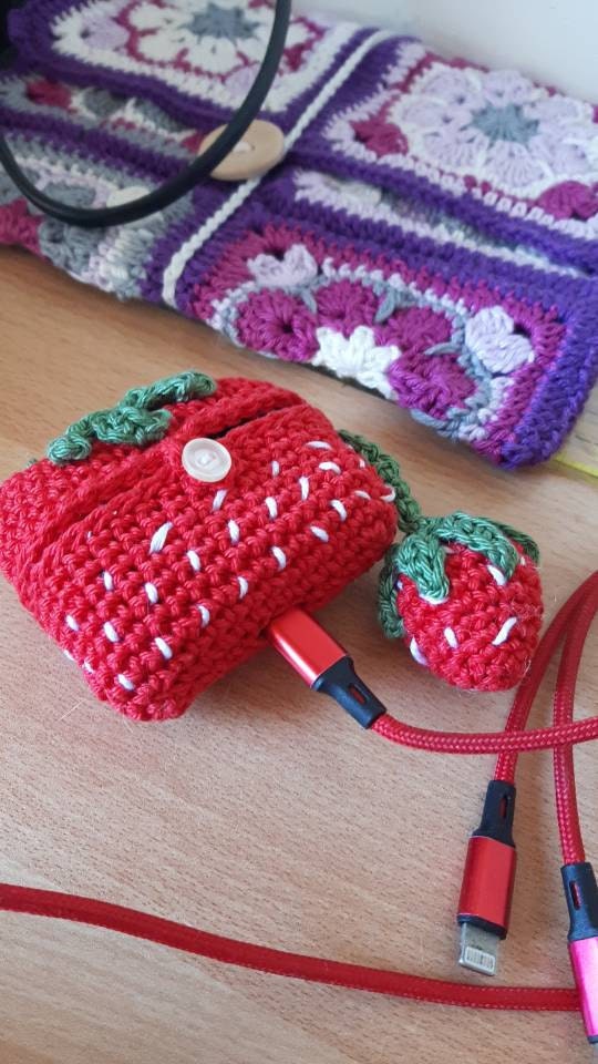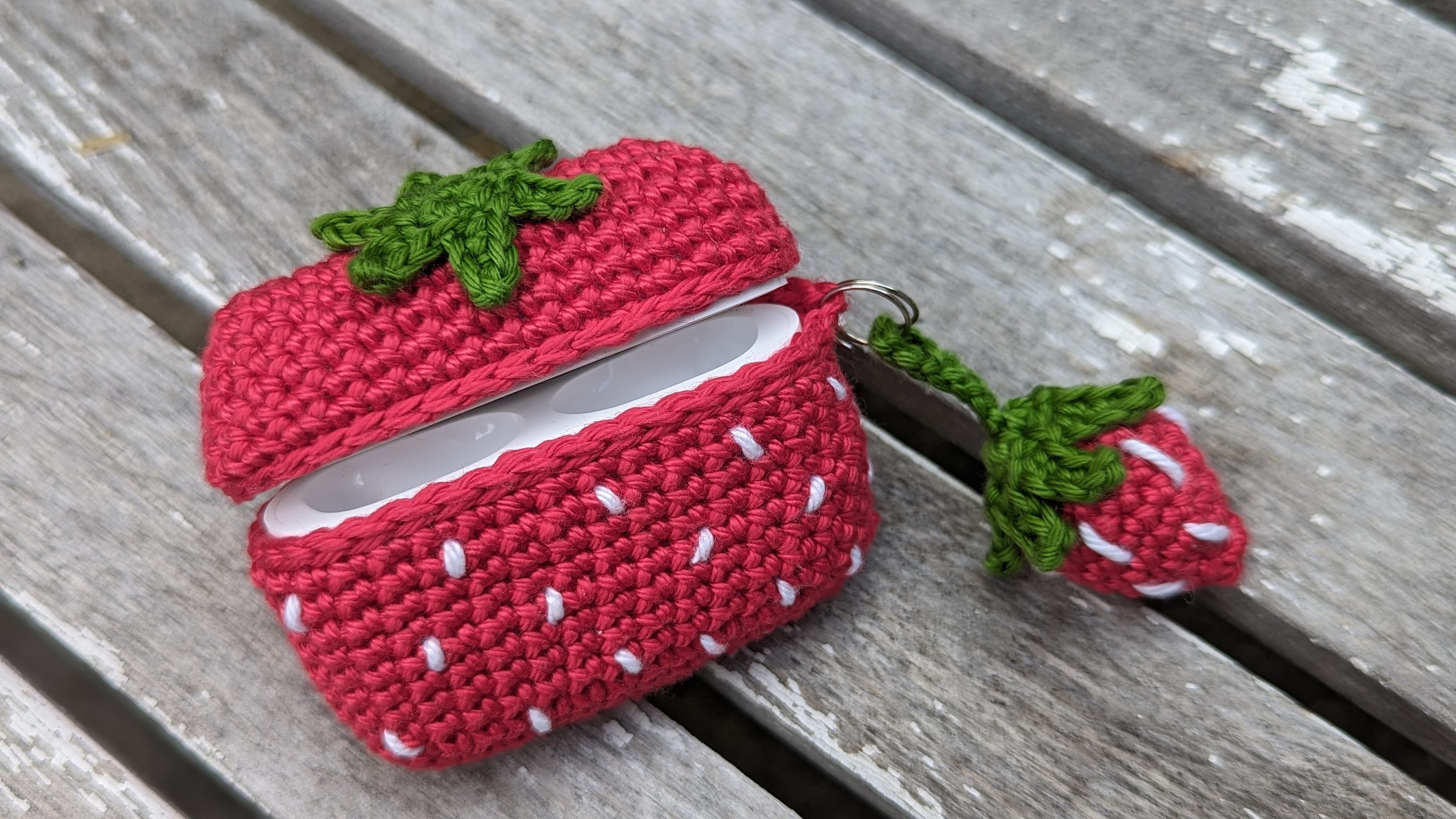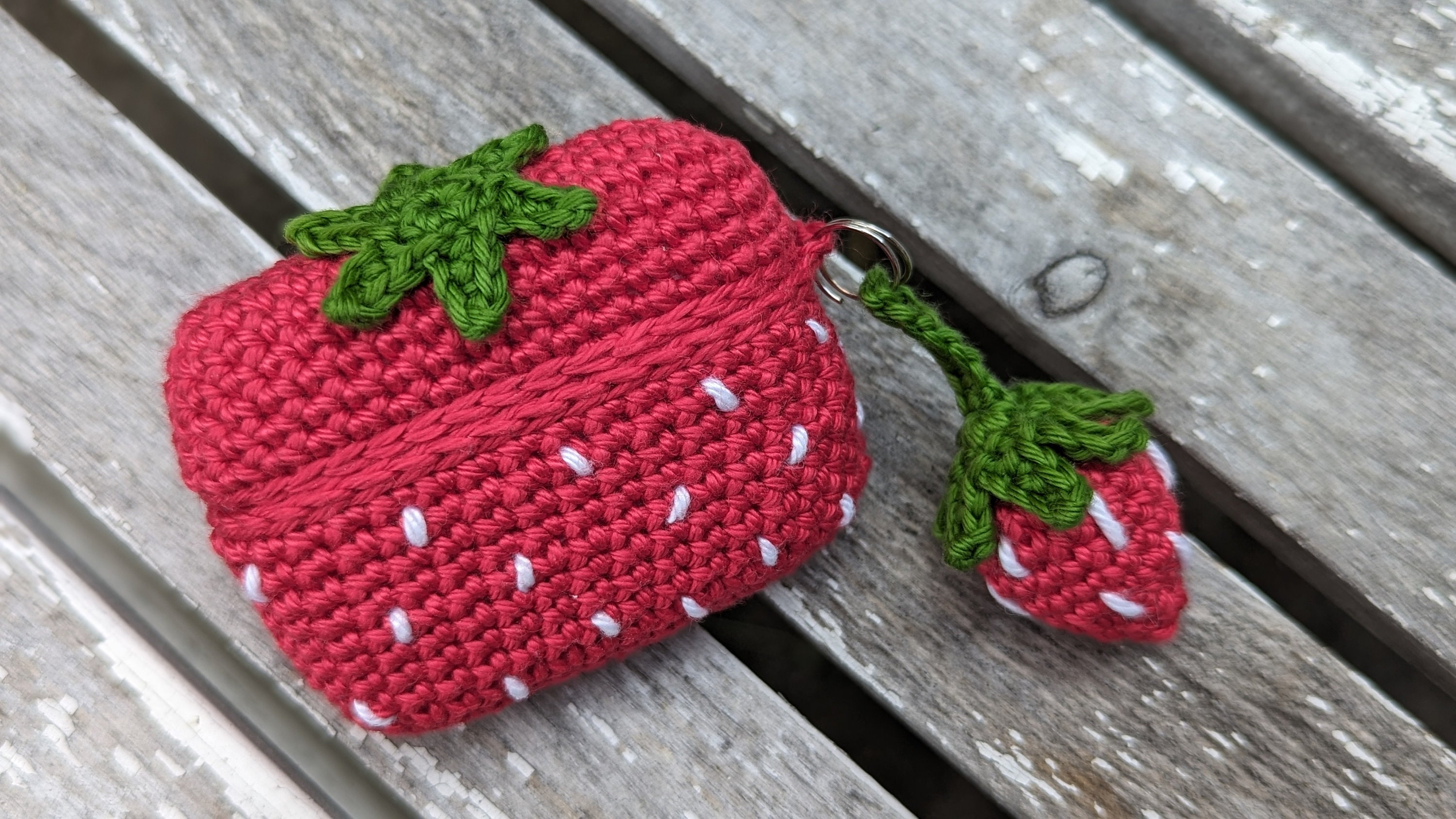 Crochet pattern for Airpod pro case, plus keychain, strawberry design.