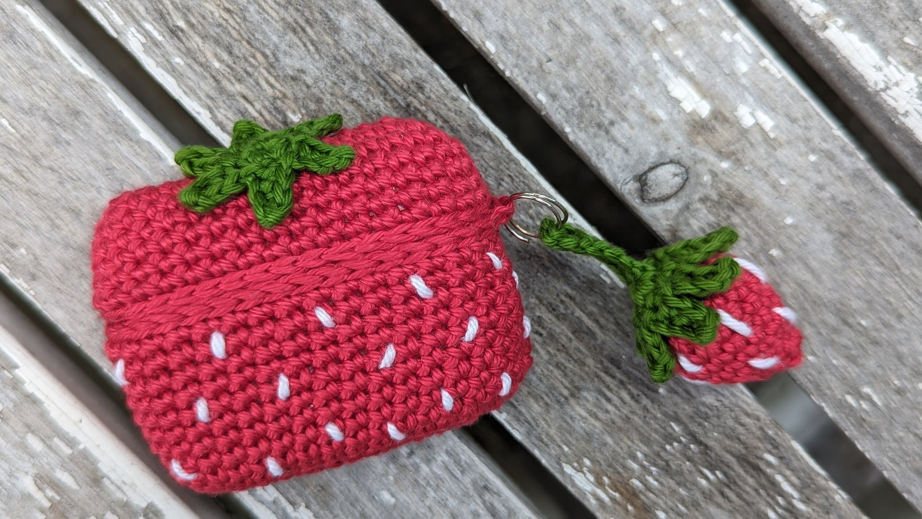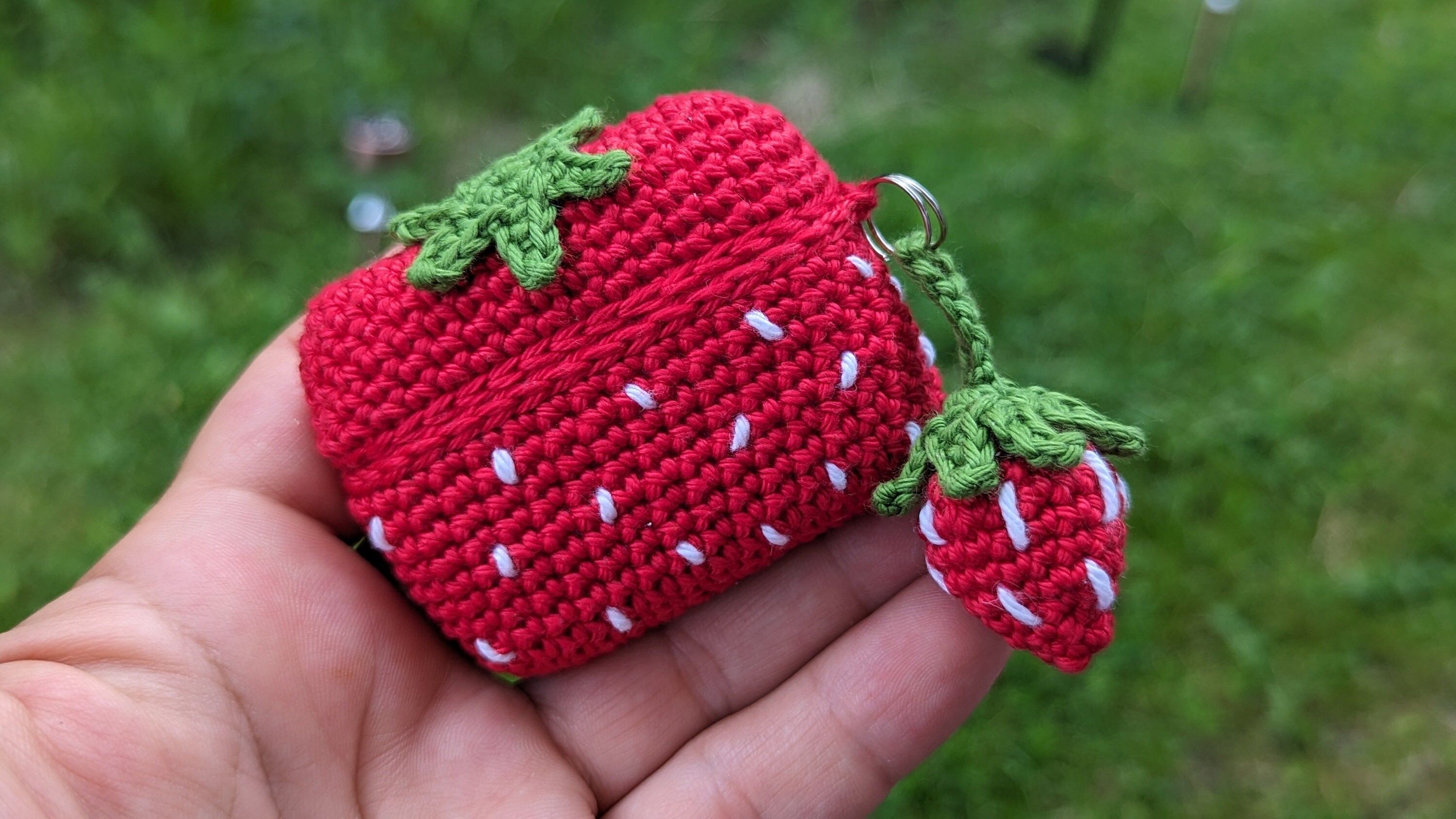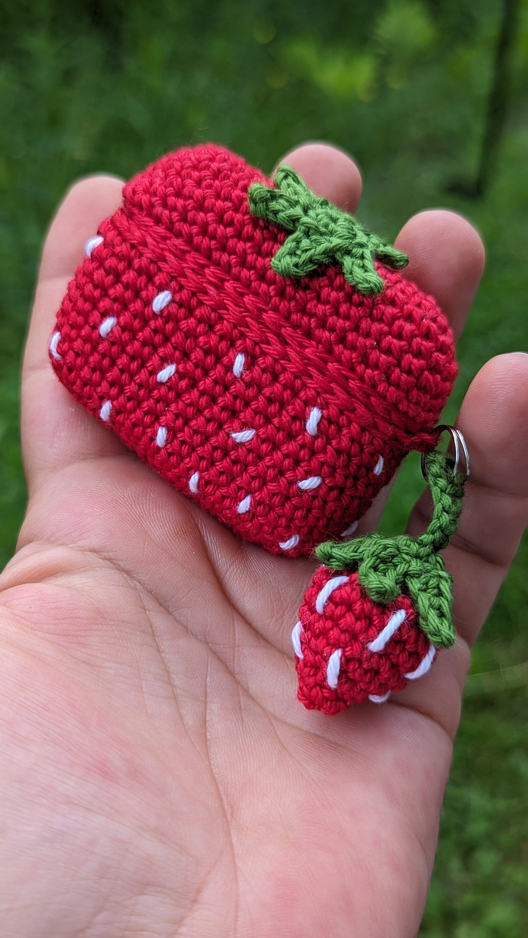 Crochet pattern for Airpod pro case, plus keychain, strawberry design.
