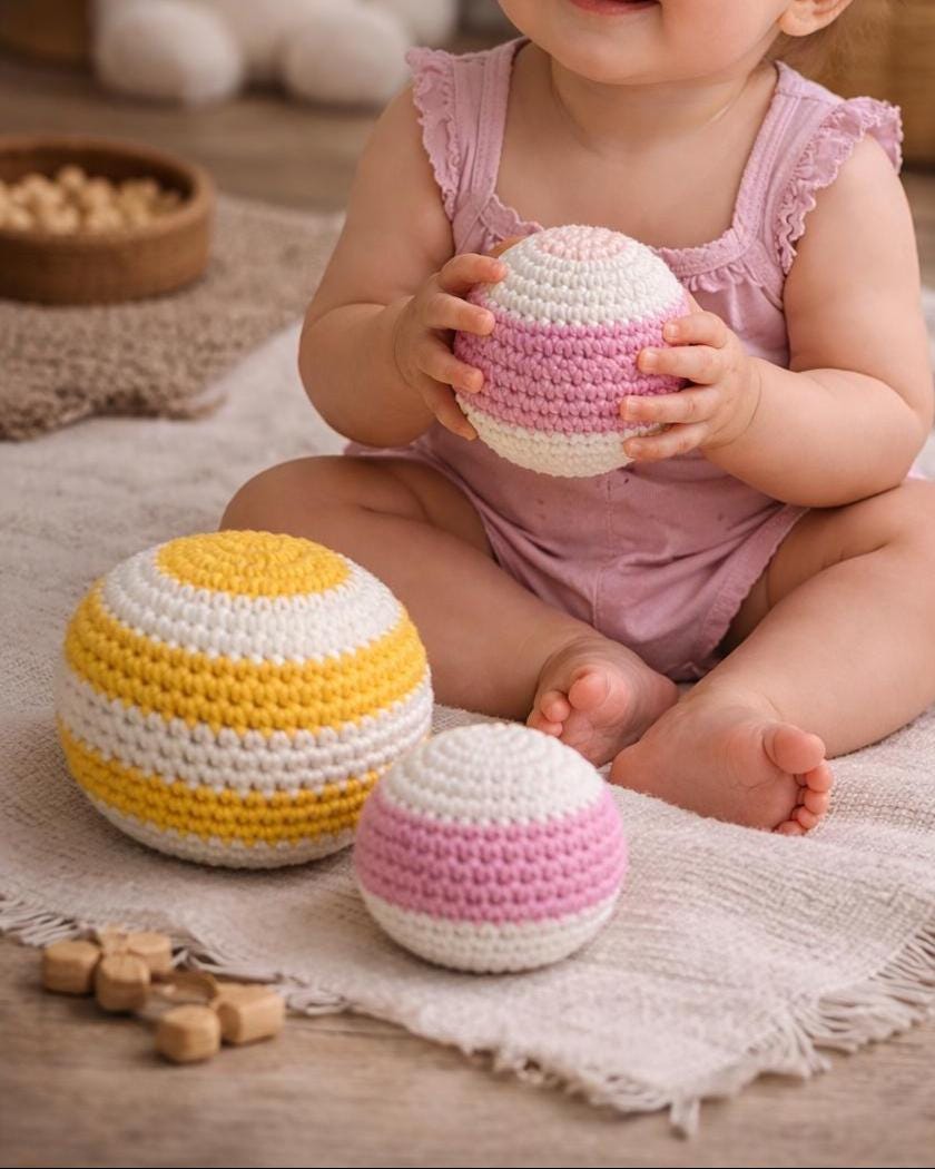 Make the cutest crochet baby sensory balls for little hands! This PDF crochet pattern bundle includes 3 sizes (small/medium/large) that’s perfect for Montessori-inspired play, nursery photos, and handmade gifts. The texture is soft and squishy, and the balls work up quickly with cotton yarn.