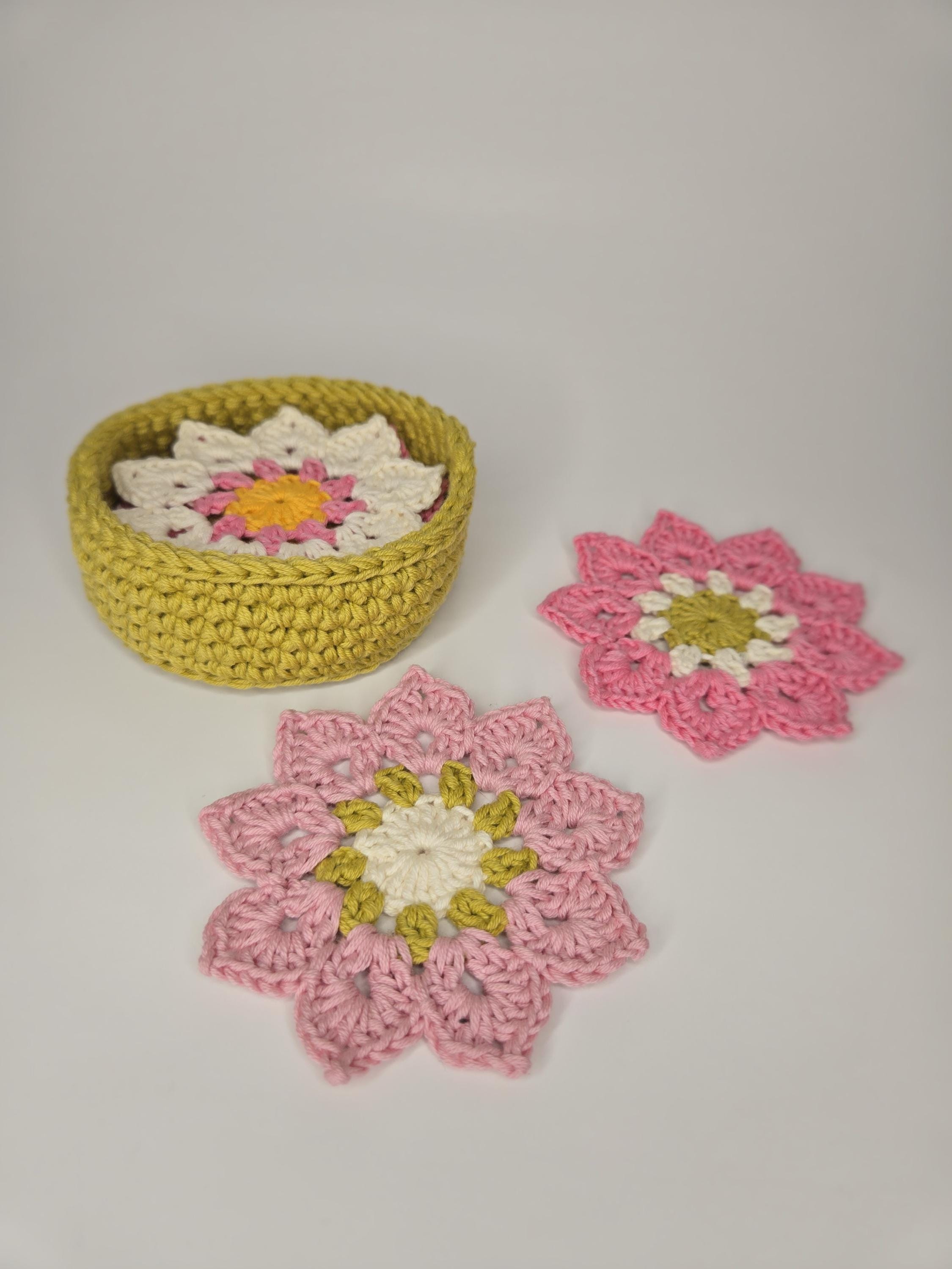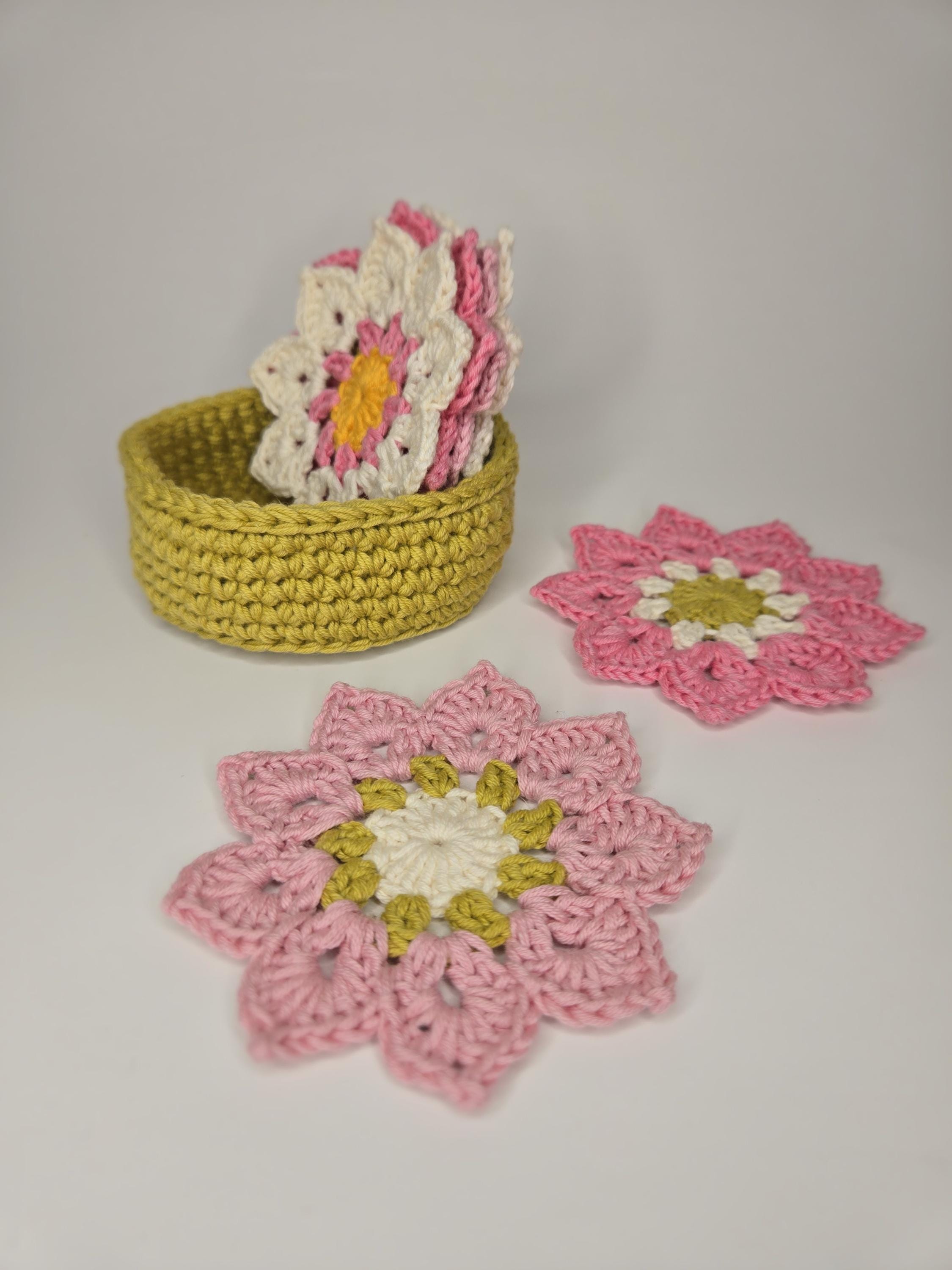 Crochet Flower Coaster Pattern, Beginner Friendly, with Basket (PDF Pattern)