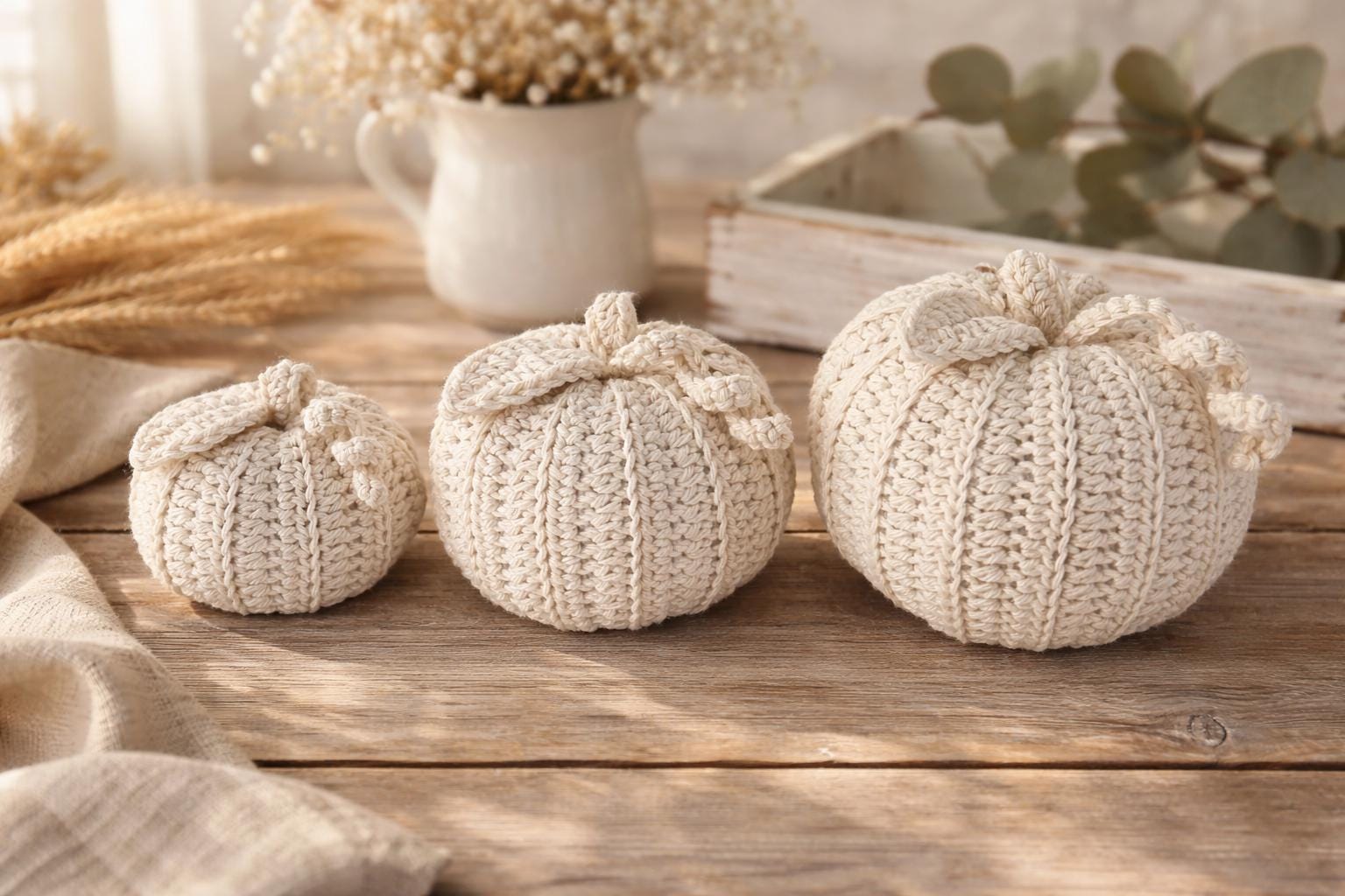Crochet White Pumpkin Pattern, Fall Decor (PDF Download)